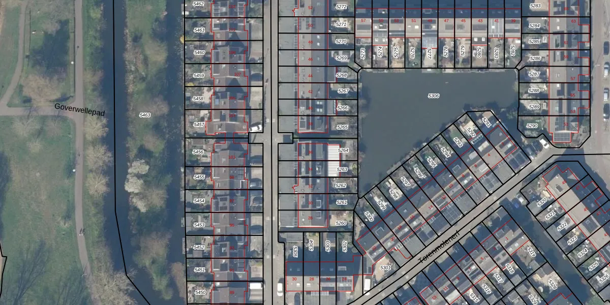 Het adres ligt op het perceel GDA01-K-5264, dat zich in de kadastrale gemeente Gouda bevindt. Het perceel is kleiner dan gemiddeld in Gouda. Het perceel is 184 m² groot, terwijl het gemiddelde ligt op 681,36 m². De grootste perceeloppervlakte in de kadastrale gemeente is 24,2 ha. De kleinste oppervlakte bedraagt 0 m². Op het perceel bevinden zich geen andere adressen. De laatste wijziging in het de Basisregistratie Kadaster (BRK) was op 05-02-1998.