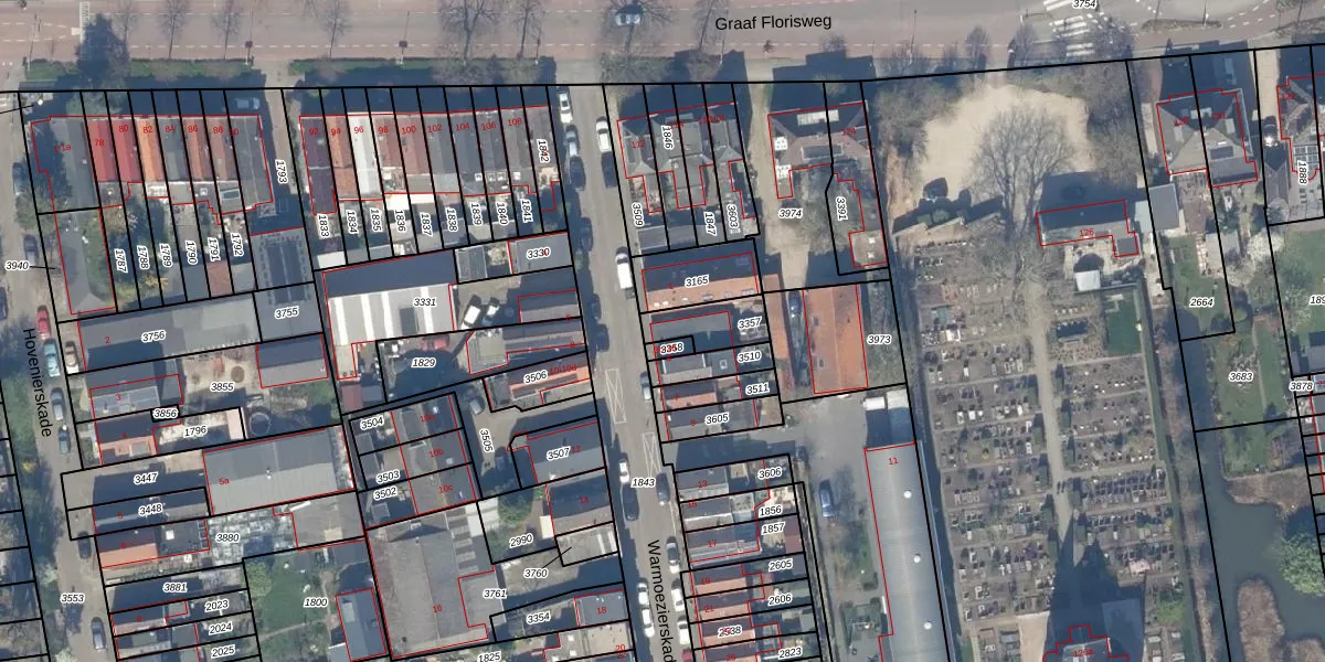 Warmoezierskade 3-b is gelegen op kadastraal perceel GDA01I3357. Deze kadastrale aanduiding is uniek en wordt gebruikt door het Kadaster om eigendomsrechten en andere zakelijke rechten vast te leggen. Het perceel maakt onderdeel uit van de kadastrale gemeente Gouda.