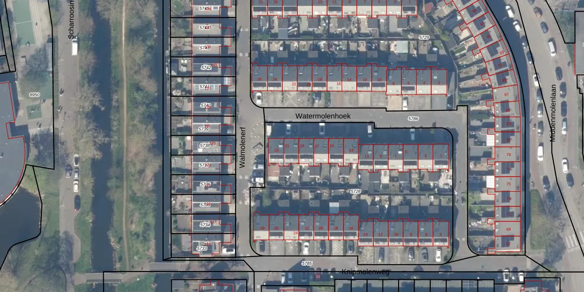 Watermolenhoek 21 is gelegen op kadastraal perceel GDA01K5728. Deze kadastrale aanduiding is uniek en wordt gebruikt door het Kadaster om eigendomsrechten en andere zakelijke rechten vast te leggen. Het perceel maakt onderdeel uit van de kadastrale gemeente Gouda.