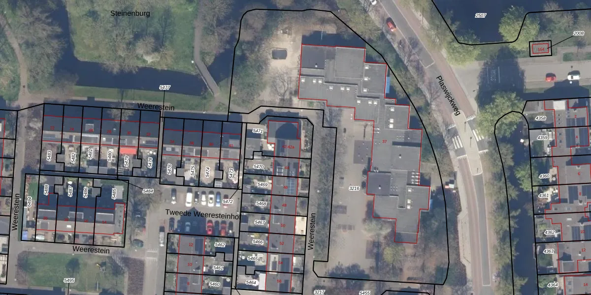 Weerestein 42 is gelegen op kadastraal perceel GDA01M5471. Deze kadastrale aanduiding is uniek en wordt gebruikt door het Kadaster om eigendomsrechten en andere zakelijke rechten vast te leggen. Het perceel maakt onderdeel uit van de kadastrale gemeente Gouda.