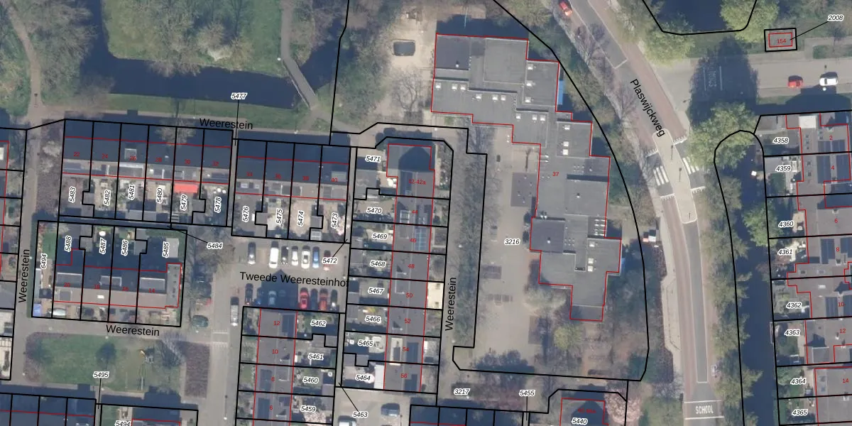 Weerestein 44 is gelegen op kadastraal perceel GDA01M5470. Deze kadastrale aanduiding is uniek en wordt gebruikt door het Kadaster om eigendomsrechten en andere zakelijke rechten vast te leggen. Het perceel maakt onderdeel uit van de kadastrale gemeente Gouda.
