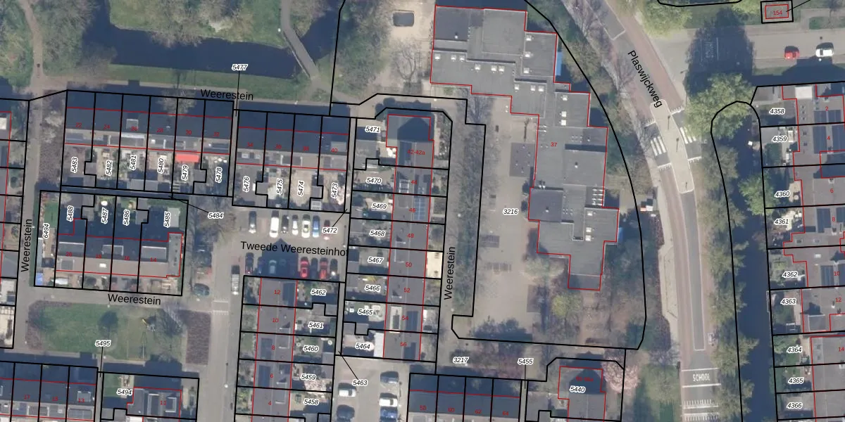 Weerestein 46 is gelegen op kadastraal perceel GDA01M5469. Deze kadastrale aanduiding is uniek en wordt gebruikt door het Kadaster om eigendomsrechten en andere zakelijke rechten vast te leggen. Het perceel maakt onderdeel uit van de kadastrale gemeente Gouda.