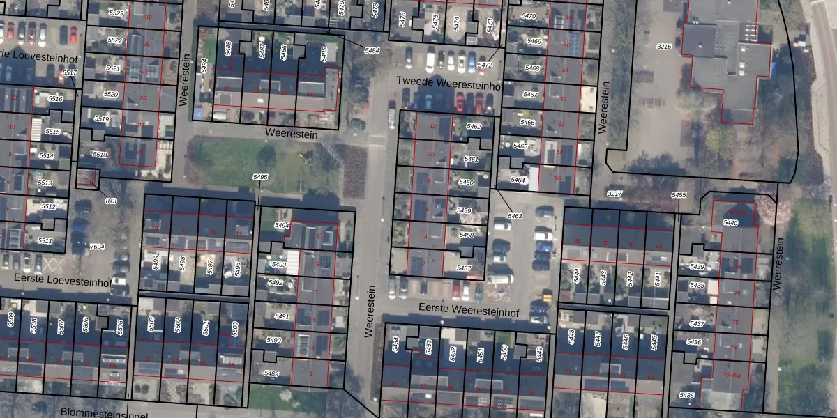 Het perceel waarop Weerestein 6 staat heeft een oppervlakte van 147 m². Dit is een middelgroot perceel. De perceeloppervlakte wordt geregistreerd door het Kadaster. Gedetailleerde informatie over de maten van dit perceel kunt u vinden in het rapport Kadastrale kaart met maatvoering van Weerestein 6.