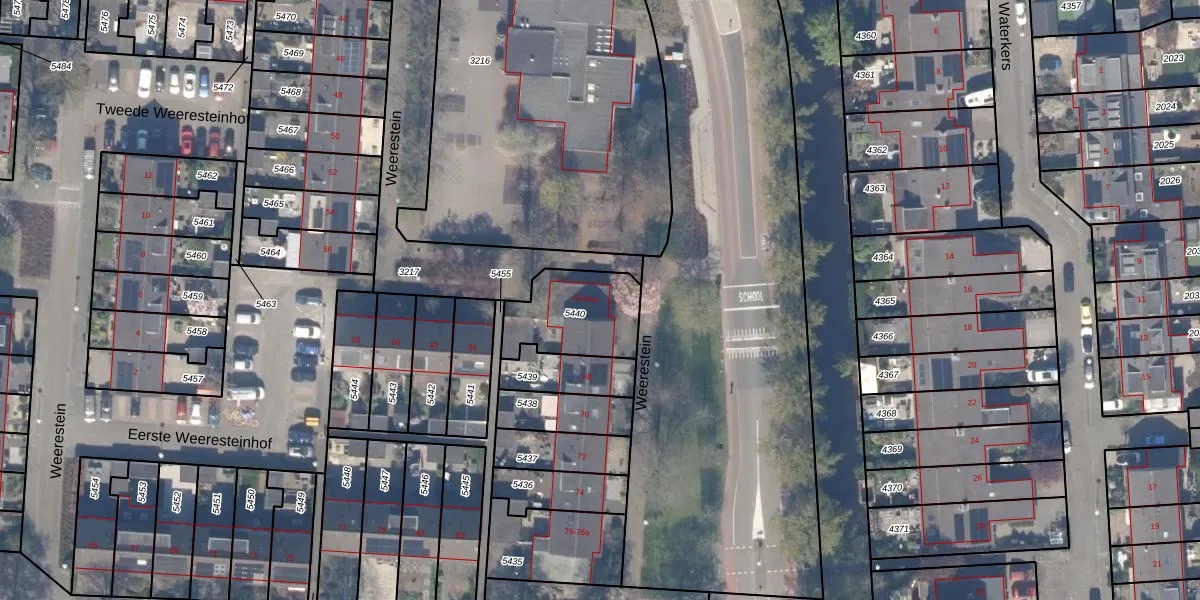 Weerestein 66 is gelegen op kadastraal perceel GDA01M5440. Deze kadastrale aanduiding is uniek en wordt gebruikt door het Kadaster om eigendomsrechten en andere zakelijke rechten vast te leggen. Het perceel maakt onderdeel uit van de kadastrale gemeente Gouda.