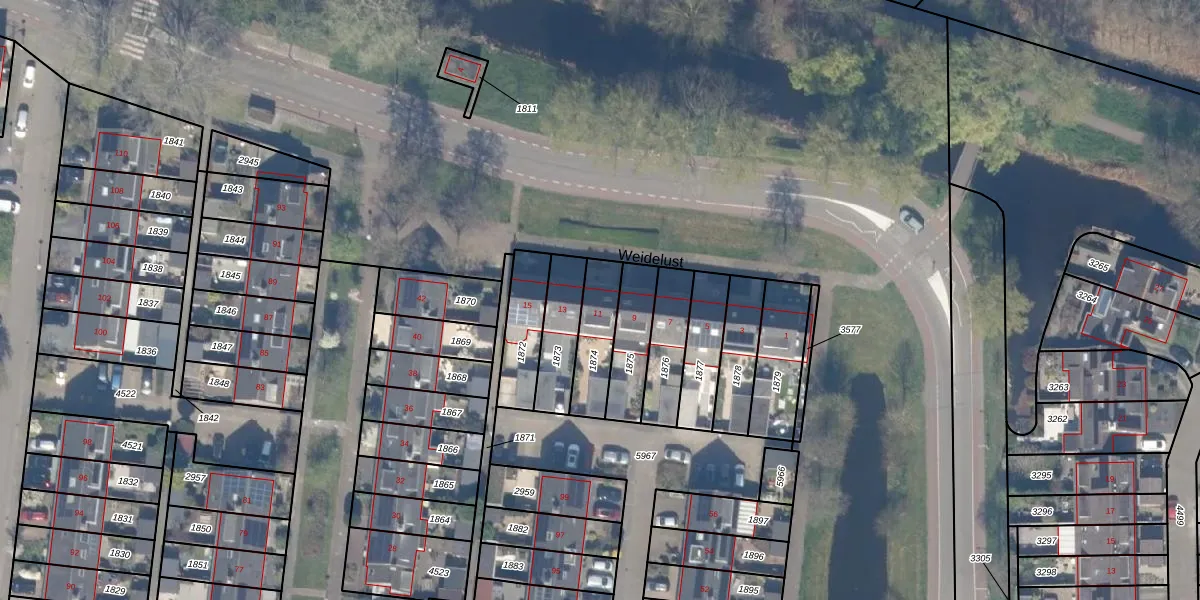 Het perceel waarop Weidelust 11 staat heeft een oppervlakte van 158 m². Dit is een middelgroot perceel. De perceeloppervlakte wordt geregistreerd door het Kadaster. Gedetailleerde informatie over de maten van dit perceel kunt u vinden in het rapport Kadastrale kaart met maatvoering van Weidelust 11.