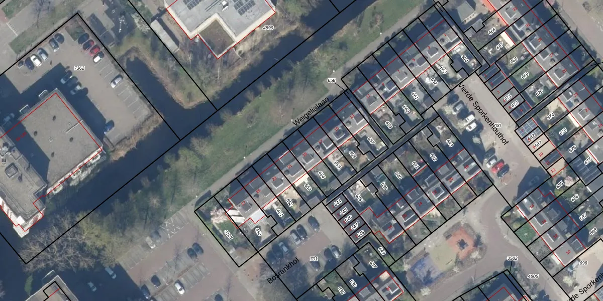 Weigelialaan 19 is gelegen op kadastraal perceel GDA01M654. Deze kadastrale aanduiding is uniek en wordt gebruikt door het Kadaster om eigendomsrechten en andere zakelijke rechten vast te leggen. Het perceel maakt onderdeel uit van de kadastrale gemeente Gouda.