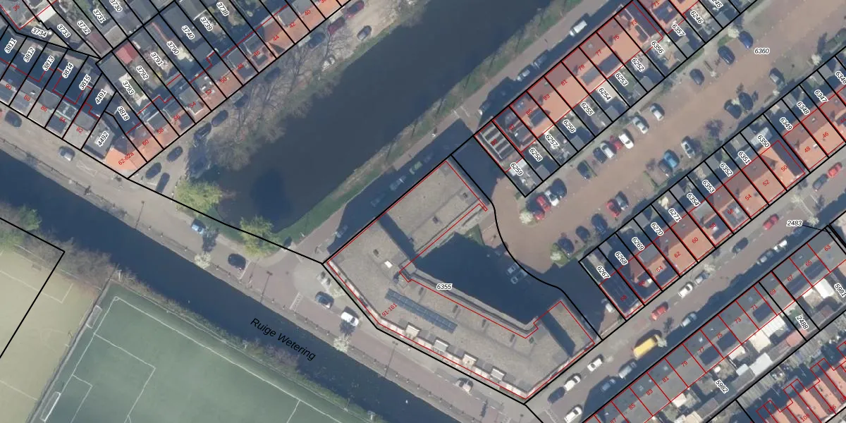 Het adres ligt op het perceel GDA01-E-6355, dat zich in de kadastrale gemeente Gouda bevindt. De oppervlakte van het perceel is 1888 m². Dat is groter dan gemiddeld in Gouda, waar de gemiddelde perceeloppervlakte op 681,36 m² ligt. De grootste perceeloppervlakte in de kadastrale gemeente is 24,2 ha. De kleinste oppervlakte bedraagt 0 m². Er zijn 37 adressen aanwezig op het perceel. In de Basisregistratie Kadaster (BRK) werden de grenzen van het perceel geregistreerd op 15-03-2011.