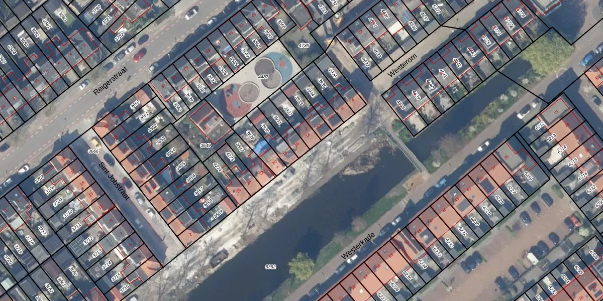 Gebruik de zoekbalk of klik op een perceel voor informatie over de adressen binnen dit perceel.