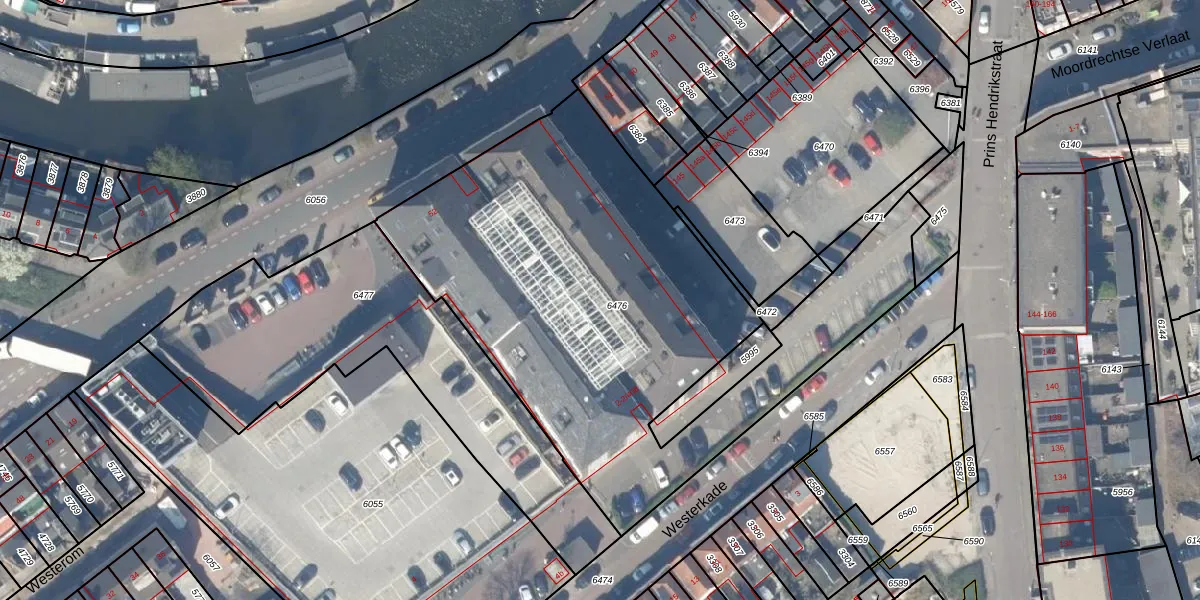 Westerkade 2-108 is gelegen op kadastraal perceel GDA01E6476. Deze kadastrale aanduiding is uniek en wordt gebruikt door het Kadaster om eigendomsrechten en andere zakelijke rechten vast te leggen. Het perceel maakt onderdeel uit van de kadastrale gemeente Gouda.