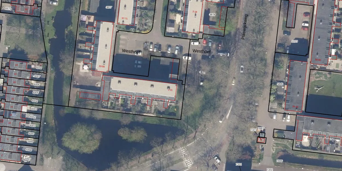 Westhoef 1 is gelegen op kadastraal perceel GDA01M3877. Deze kadastrale aanduiding is uniek en wordt gebruikt door het Kadaster om eigendomsrechten en andere zakelijke rechten vast te leggen. Het perceel maakt onderdeel uit van de kadastrale gemeente Gouda.