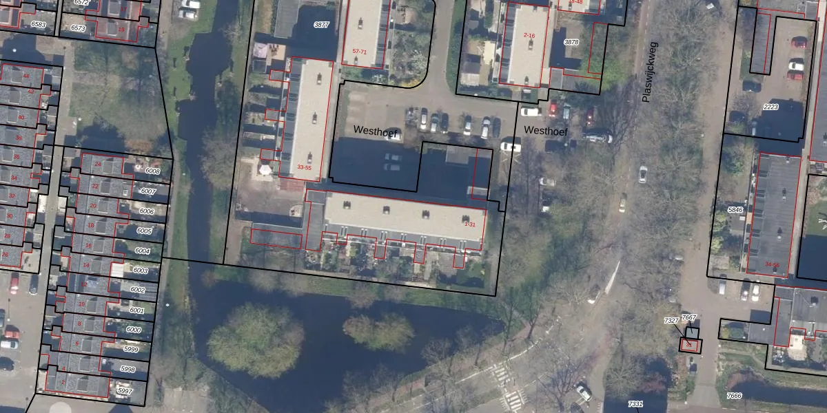 Het perceel waarop Westhoef 13 staat heeft een oppervlakte van 5376 m². Dit is een zeer groot perceel. De perceeloppervlakte wordt geregistreerd door het Kadaster. Gedetailleerde informatie over de maten van dit perceel kunt u vinden in het rapport Kadastrale kaart met maatvoering van Westhoef 13.