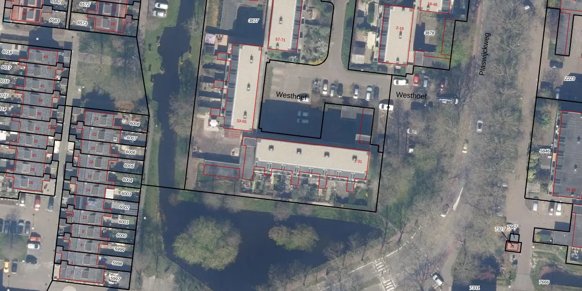 Westhoef 21 is gelegen op kadastraal perceel GDA01M3877. Deze kadastrale aanduiding is uniek en wordt gebruikt door het Kadaster om eigendomsrechten en andere zakelijke rechten vast te leggen. Het perceel maakt onderdeel uit van de kadastrale gemeente Gouda.