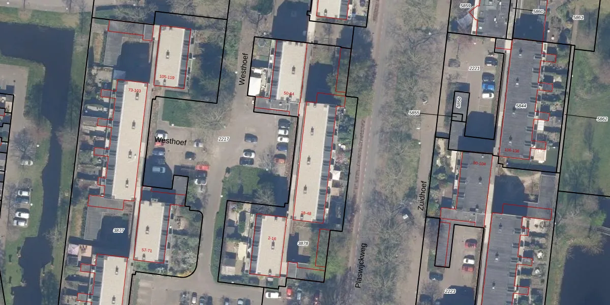 Westhoef 34 is gelegen op kadastraal perceel GDA01M3878. Deze kadastrale aanduiding is uniek en wordt gebruikt door het Kadaster om eigendomsrechten en andere zakelijke rechten vast te leggen. Het perceel maakt onderdeel uit van de kadastrale gemeente Gouda.