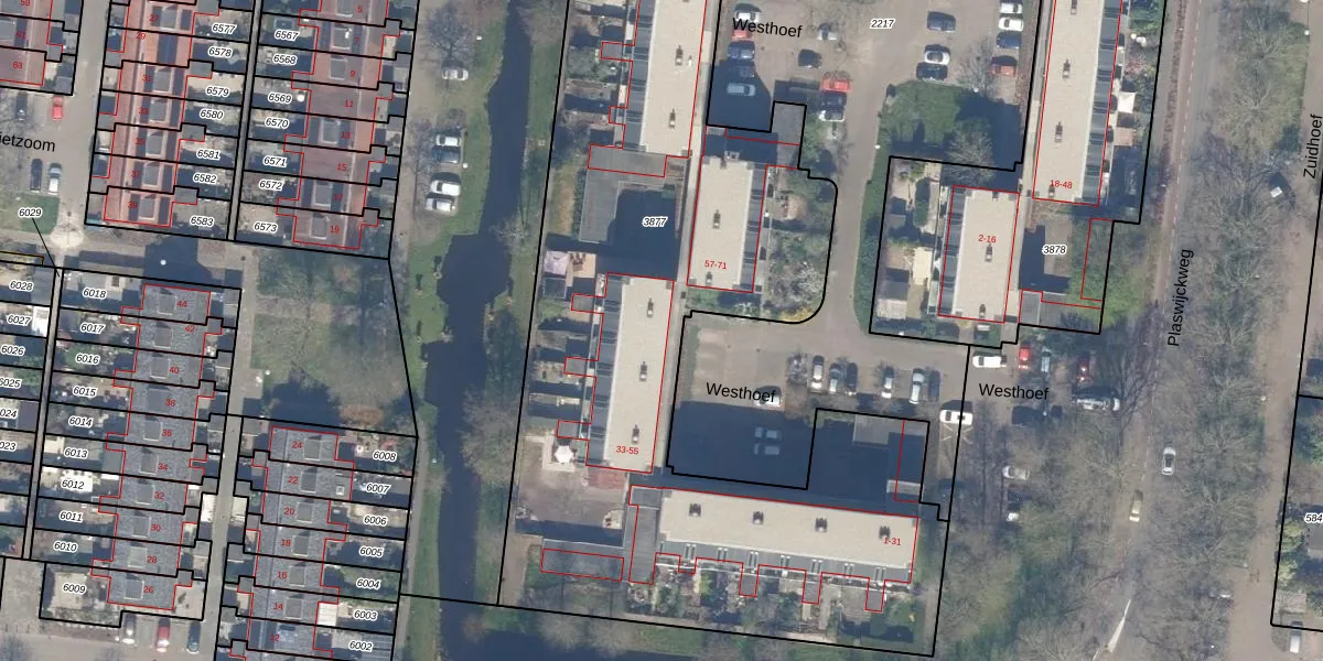Westhoef 49 is gelegen op kadastraal perceel GDA01M3877. Deze kadastrale aanduiding is uniek en wordt gebruikt door het Kadaster om eigendomsrechten en andere zakelijke rechten vast te leggen. Het perceel maakt onderdeel uit van de kadastrale gemeente Gouda.