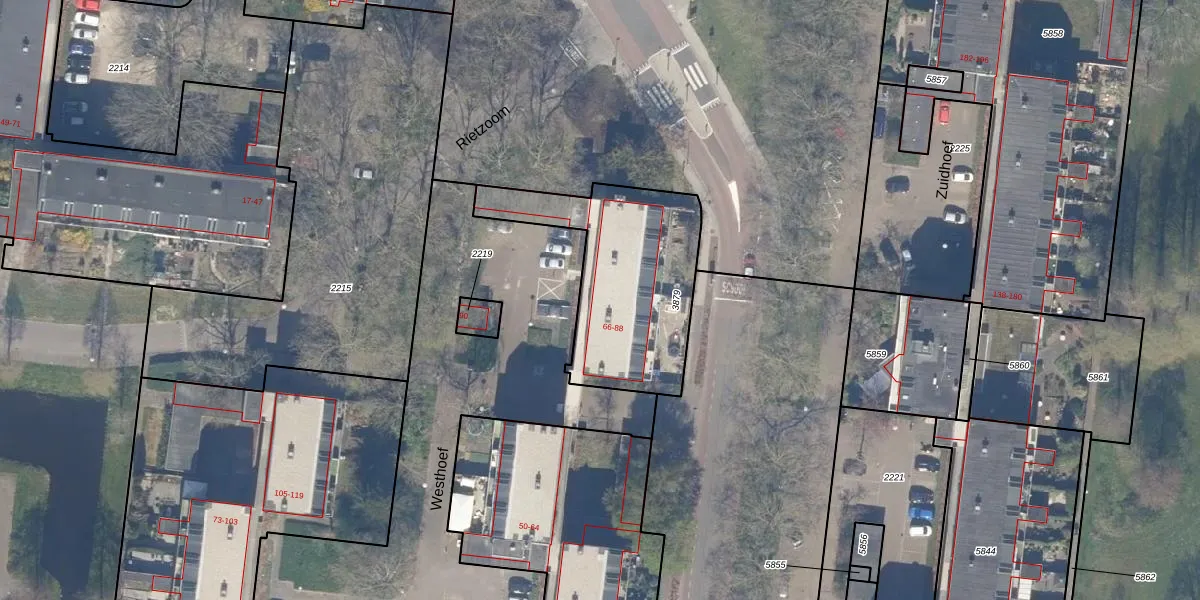 Het perceel waarop Westhoef 74 staat heeft een oppervlakte van 733 m². Dit is een groot perceel. De perceeloppervlakte wordt geregistreerd door het Kadaster. Gedetailleerde informatie over de maten van dit perceel kunt u vinden in het rapport Kadastrale kaart met maatvoering van Westhoef 74.