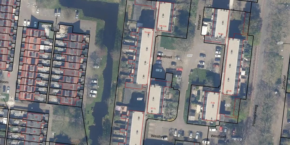 Het perceel waarop Westhoef 79 staat heeft een oppervlakte van 5376 m². Dit is een zeer groot perceel. De perceeloppervlakte wordt geregistreerd door het Kadaster. Gedetailleerde informatie over de maten van dit perceel kunt u vinden in het rapport Kadastrale kaart met maatvoering van Westhoef 79.