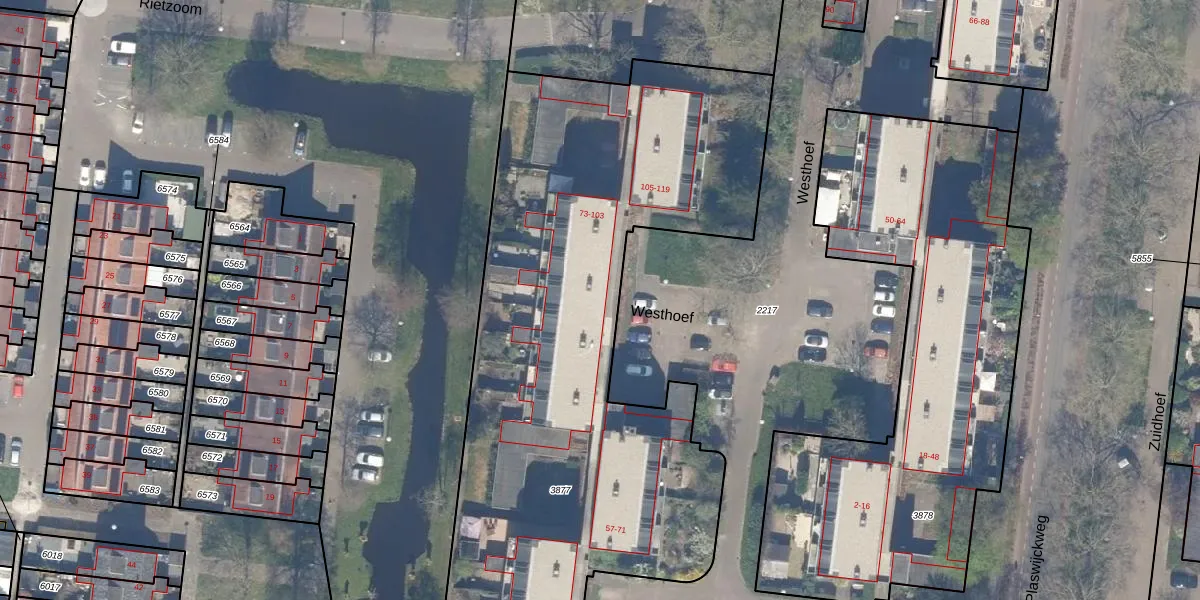Het perceel waarop Westhoef 89 staat heeft een oppervlakte van 5376 m². Dit is een zeer groot perceel. De perceeloppervlakte wordt geregistreerd door het Kadaster. Gedetailleerde informatie over de maten van dit perceel kunt u vinden in het rapport Kadastrale kaart met maatvoering van Westhoef 89.