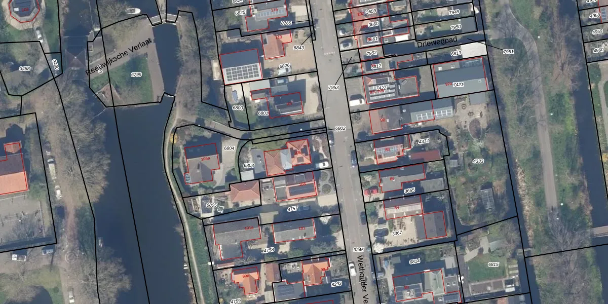 Gebruik de zoekbalk of klik op een perceel voor informatie over de adressen binnen dit perceel.