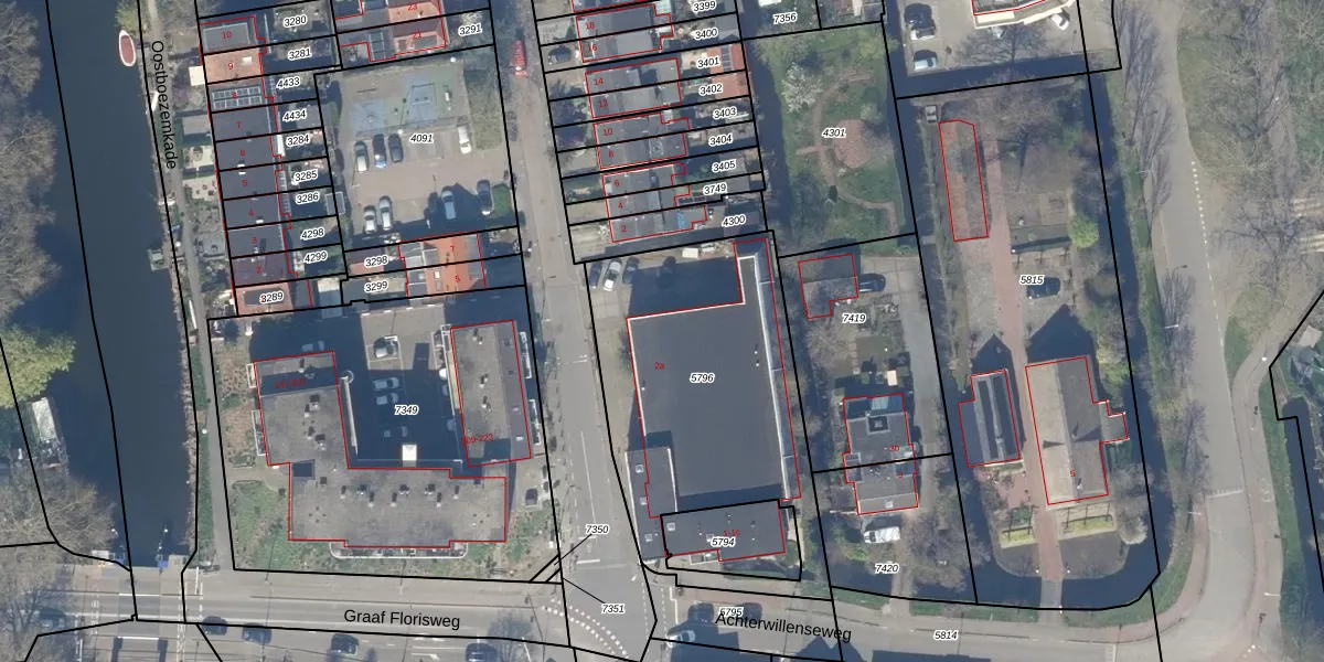 Het perceel waarop het adres ligt is GDA01-K-5796. De afkorting 'GDA01' staat voor kadastrale gemeente Gouda. De oppervlakte van het perceel is 1300 m². Dat is groter dan gemiddeld in Gouda, waar de gemiddelde perceeloppervlakte op 678,78 m² ligt. De grootste perceeloppervlakte in de kadastrale gemeente is 24,2 ha. De kleinste oppervlakte bedraagt 0 m². Er zijn 23 adressen aanwezig op het perceel. De huidige grenzen van het perceel zijn digitaal in de Basisregistratie Kadaster (BRK) geregistreerd op 17-12-2007.
