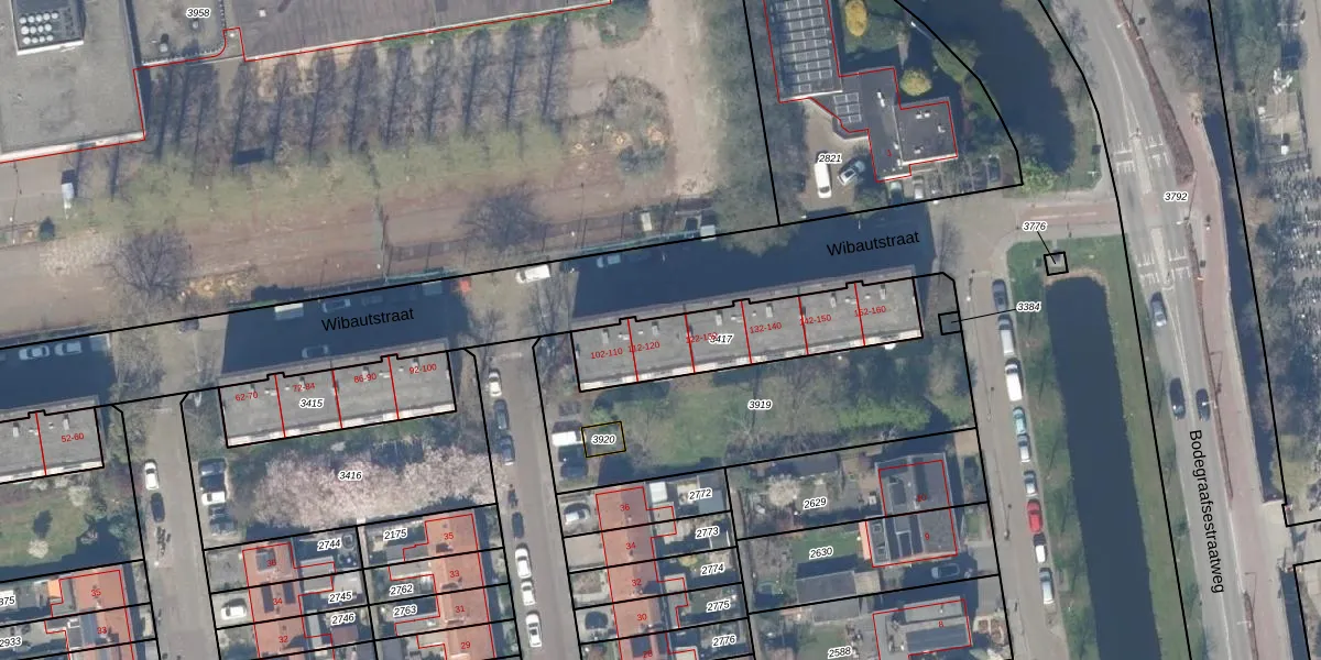Wibautstraat 118 is gelegen op kadastraal perceel GDA01I3417. Deze kadastrale aanduiding is uniek en wordt gebruikt door het Kadaster om eigendomsrechten en andere zakelijke rechten vast te leggen. Het perceel maakt onderdeel uit van de kadastrale gemeente Gouda.
