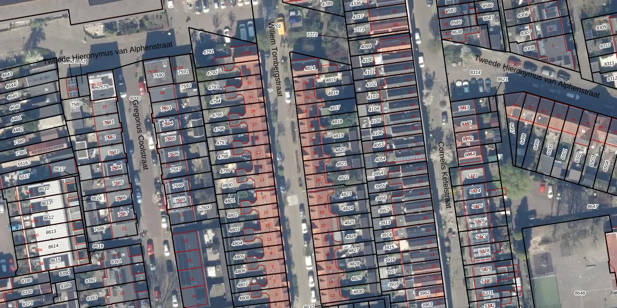 Willem Tombergstraat 32 is gelegen op kadastraal perceel GDA01A4820. Deze kadastrale aanduiding is uniek en wordt gebruikt door het Kadaster om eigendomsrechten en andere zakelijke rechten vast te leggen. Het perceel maakt onderdeel uit van de kadastrale gemeente Gouda.