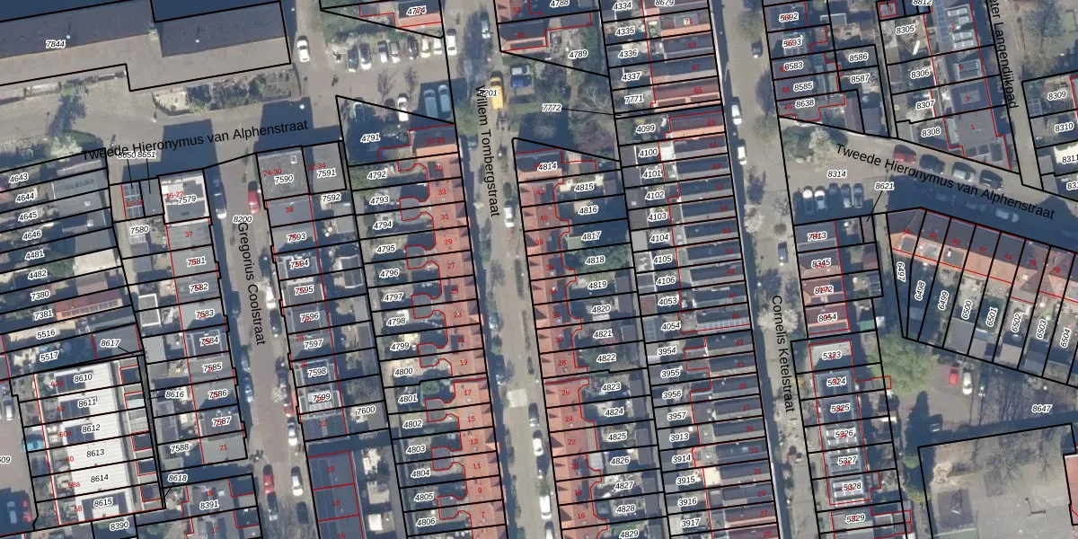 Gebruik de zoekbalk of klik op een perceel voor informatie over de adressen binnen dit perceel.