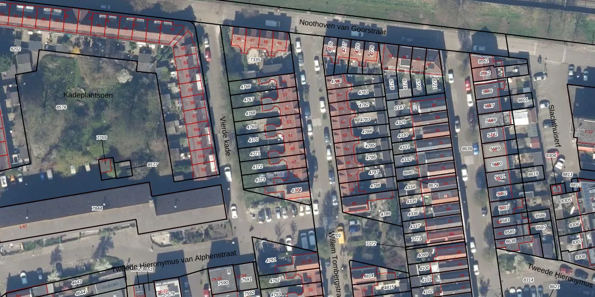Willem Tombergstraat 49 is gelegen op kadastraal perceel GDA01A4771. Deze kadastrale aanduiding is uniek en wordt gebruikt door het Kadaster om eigendomsrechten en andere zakelijke rechten vast te leggen. Het perceel maakt onderdeel uit van de kadastrale gemeente Gouda.