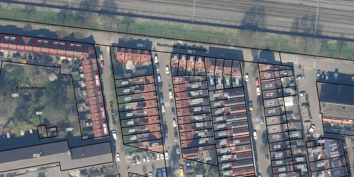 Gebruik de zoekbalk of klik op een perceel voor informatie over de adressen binnen dit perceel.