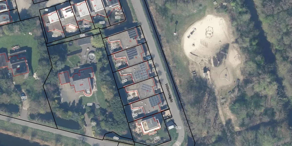 Het perceel waarop Willenskade 7 staat heeft een oppervlakte van 345 m². Dit is een groot perceel. De perceeloppervlakte wordt geregistreerd door het Kadaster. Gedetailleerde informatie over de maten van dit perceel kunt u vinden in het rapport Kadastrale kaart met maatvoering van Willenskade 7.