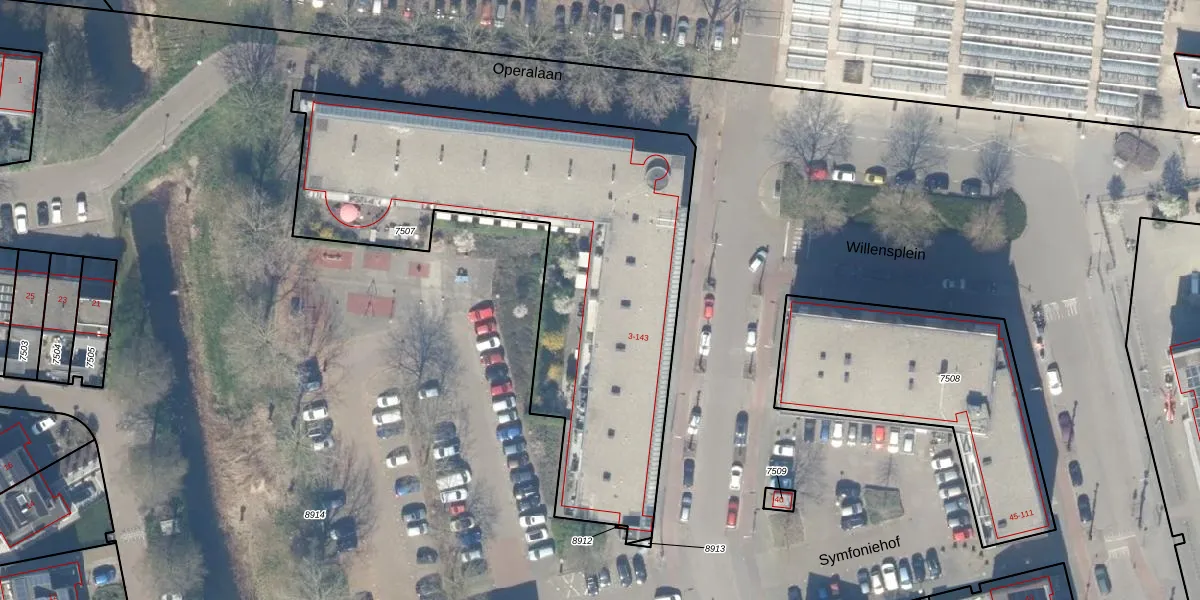 Het perceel waarop Willensplein 129 staat heeft een oppervlakte van 2300 m². Dit is een zeer groot perceel. De perceeloppervlakte wordt geregistreerd door het Kadaster. Gedetailleerde informatie over de maten van dit perceel kunt u vinden in het rapport Kadastrale kaart met maatvoering van Willensplein 129.