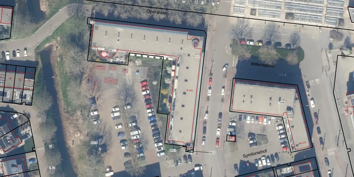 Het perceel waarop Willensplein 131 staat heeft een oppervlakte van 2300 m². Dit is een zeer groot perceel. De perceeloppervlakte wordt geregistreerd door het Kadaster. Gedetailleerde informatie over de maten van dit perceel kunt u vinden in het rapport Kadastrale kaart met maatvoering van Willensplein 131.