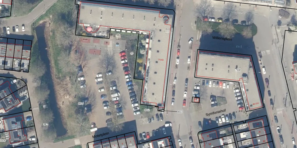 Het perceel waarop Willensplein 135 staat heeft een oppervlakte van 2300 m². Dit is een zeer groot perceel. De perceeloppervlakte wordt geregistreerd door het Kadaster. Gedetailleerde informatie over de maten van dit perceel kunt u vinden in het rapport Kadastrale kaart met maatvoering van Willensplein 135.