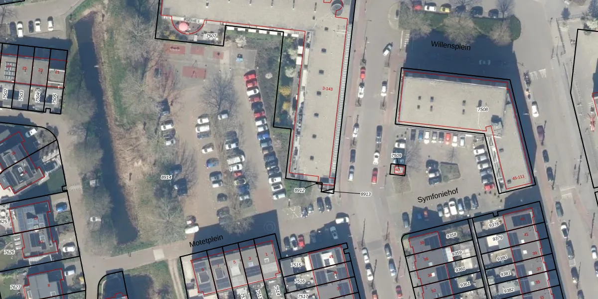 Het perceel waarop Willensplein 139 staat heeft een oppervlakte van 2300 m². Dit is een zeer groot perceel. De perceeloppervlakte wordt geregistreerd door het Kadaster. Gedetailleerde informatie over de maten van dit perceel kunt u vinden in het rapport Kadastrale kaart met maatvoering van Willensplein 139.