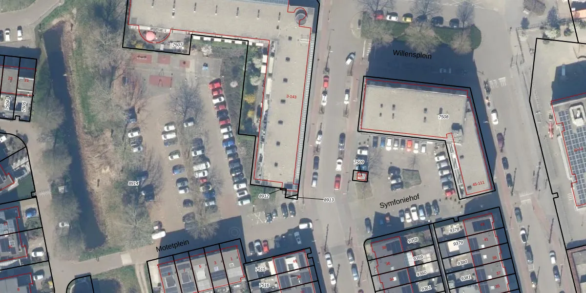 Het perceel waarop Willensplein 17 staat heeft een oppervlakte van 2300 m². Dit is een zeer groot perceel. De perceeloppervlakte wordt geregistreerd door het Kadaster. Gedetailleerde informatie over de maten van dit perceel kunt u vinden in het rapport Kadastrale kaart met maatvoering van Willensplein 17.