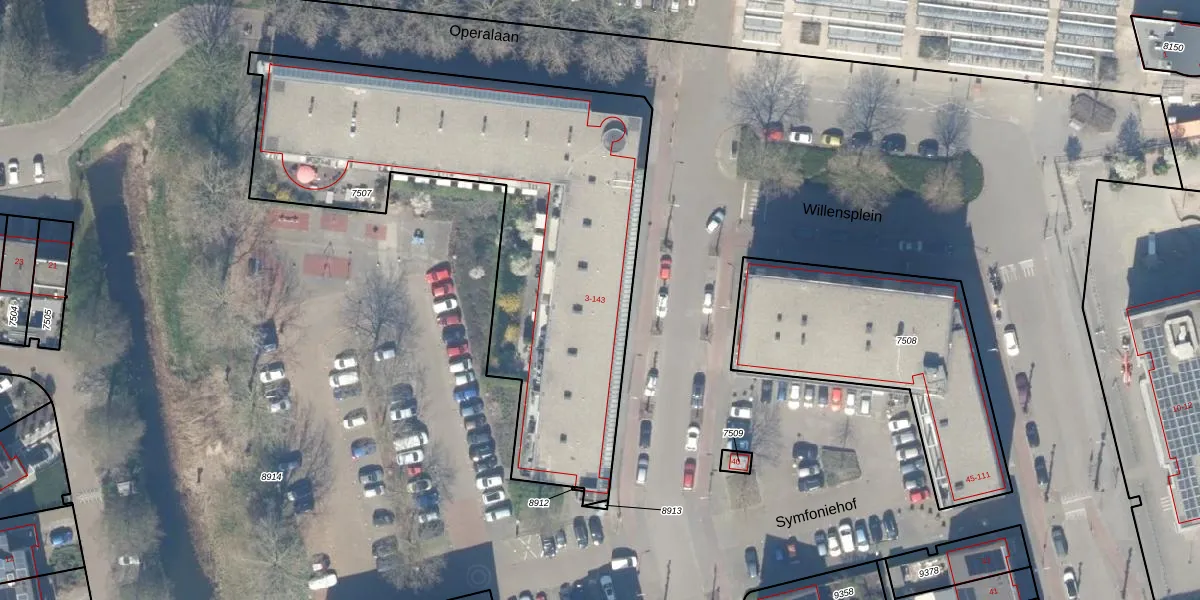 Het perceel waarop Willensplein 31 staat heeft een oppervlakte van 2300 m². Dit is een zeer groot perceel. De perceeloppervlakte wordt geregistreerd door het Kadaster. Gedetailleerde informatie over de maten van dit perceel kunt u vinden in het rapport Kadastrale kaart met maatvoering van Willensplein 31.