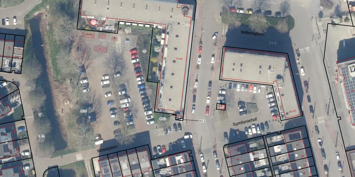 Het perceel waarop Willensplein 37 staat heeft een oppervlakte van 2300 m². Dit is een zeer groot perceel. De perceeloppervlakte wordt geregistreerd door het Kadaster. Gedetailleerde informatie over de maten van dit perceel kunt u vinden in het rapport Kadastrale kaart met maatvoering van Willensplein 37.