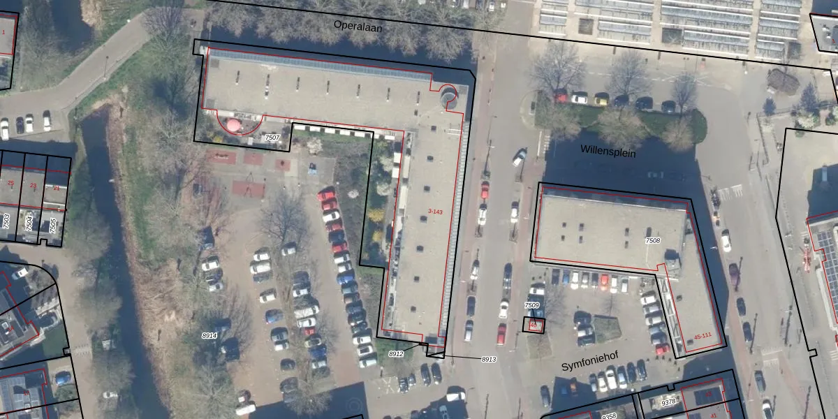 Het perceel waarop Willensplein 91 staat heeft een oppervlakte van 2300 m². Dit is een zeer groot perceel. De perceeloppervlakte wordt geregistreerd door het Kadaster. Gedetailleerde informatie over de maten van dit perceel kunt u vinden in het rapport Kadastrale kaart met maatvoering van Willensplein 91.