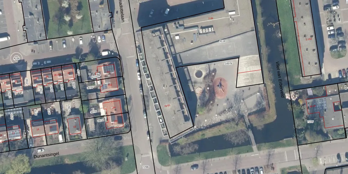 Het perceel waarop Wilsonplein 21 staat heeft een oppervlakte van 3279 m². Dit is een zeer groot perceel. De perceeloppervlakte wordt geregistreerd door het Kadaster. Gedetailleerde informatie over de maten van dit perceel kunt u vinden in het rapport Kadastrale kaart met maatvoering van Wilsonplein 21.