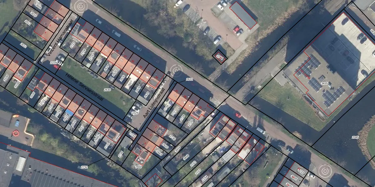 Gebruik de zoekbalk of klik op een perceel voor informatie over de adressen binnen dit perceel.