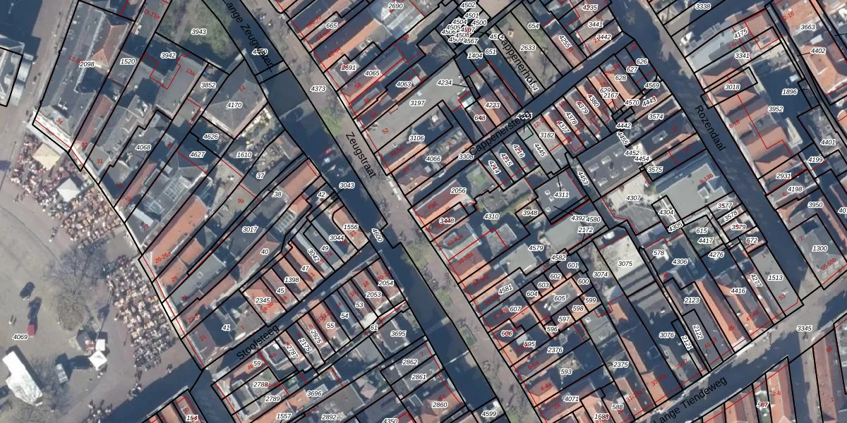 Zeugstraat 42 is gelegen op kadastraal perceel GDA01C2056. Deze kadastrale aanduiding is uniek en wordt gebruikt door het Kadaster om eigendomsrechten en andere zakelijke rechten vast te leggen. Het perceel maakt onderdeel uit van de kadastrale gemeente Gouda.