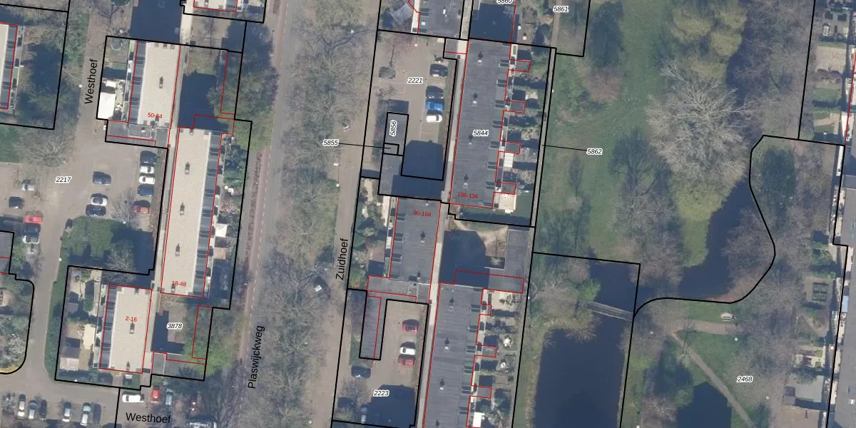 Het perceel waarop Zuidhoef 104 staat heeft een oppervlakte van 3920 m². Dit is een zeer groot perceel. De perceeloppervlakte wordt geregistreerd door het Kadaster. Gedetailleerde informatie over de maten van dit perceel kunt u vinden in het rapport Kadastrale kaart met maatvoering van Zuidhoef 104.