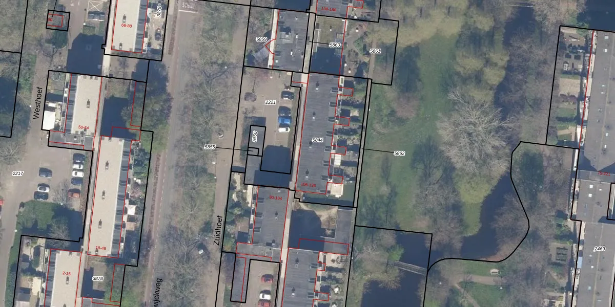 Het perceel waarop Zuidhoef 116 staat heeft een oppervlakte van 1010 m². Dit is een zeer groot perceel. De perceeloppervlakte wordt geregistreerd door het Kadaster. Gedetailleerde informatie over de maten van dit perceel kunt u vinden in het rapport Kadastrale kaart met maatvoering van Zuidhoef 116.