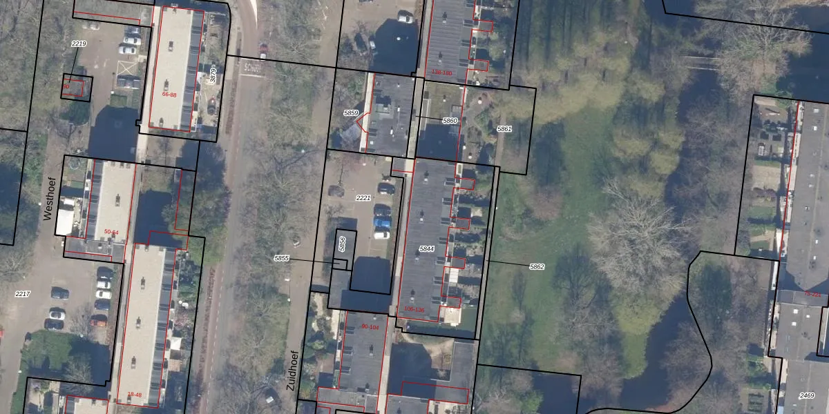Het perceel waarop Zuidhoef 128 staat heeft een oppervlakte van 1010 m². Dit is een zeer groot perceel. De perceeloppervlakte wordt geregistreerd door het Kadaster. Gedetailleerde informatie over de maten van dit perceel kunt u vinden in het rapport Kadastrale kaart met maatvoering van Zuidhoef 128.