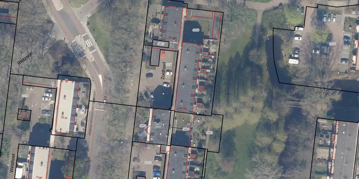Zuidhoef 158 is gelegen op kadastraal perceel GDA01M5858. Deze kadastrale aanduiding is uniek en wordt gebruikt door het Kadaster om eigendomsrechten en andere zakelijke rechten vast te leggen. Het perceel maakt onderdeel uit van de kadastrale gemeente Gouda.