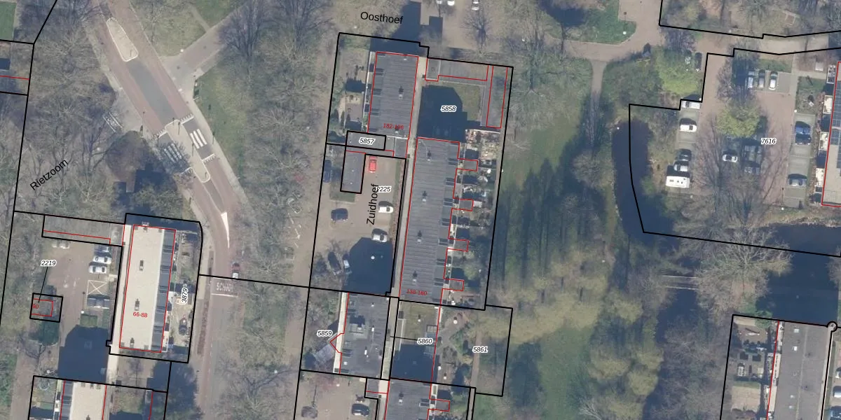 Het perceel waarop Zuidhoef 168 staat heeft een oppervlakte van 1867 m². Dit is een zeer groot perceel. De perceeloppervlakte wordt geregistreerd door het Kadaster. Gedetailleerde informatie over de maten van dit perceel kunt u vinden in het rapport Kadastrale kaart met maatvoering van Zuidhoef 168.