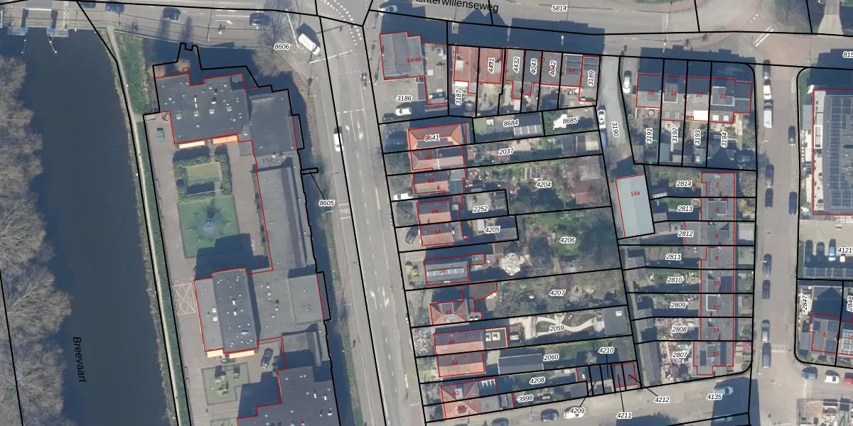 Gebruik de zoekbalk of klik op een perceel voor informatie over de adressen binnen dit perceel.