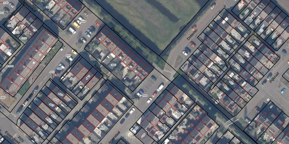 Het perceel waarop Eikenhof 32 staat heeft een oppervlakte van 1015 m². Dit is een zeer groot perceel. De perceeloppervlakte wordt geregistreerd door het Kadaster. Gedetailleerde informatie over de maten van dit perceel kunt u vinden in het rapport Kadastrale kaart met maatvoering van Eikenhof 32.