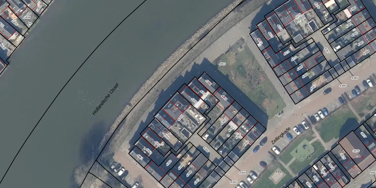 Zellingkade 13 is gelegen op kadastraal perceel GDR02B4356. Deze kadastrale aanduiding is uniek en wordt gebruikt door het Kadaster om eigendomsrechten en andere zakelijke rechten vast te leggen. Het perceel maakt onderdeel uit van de kadastrale gemeente Gouderak.