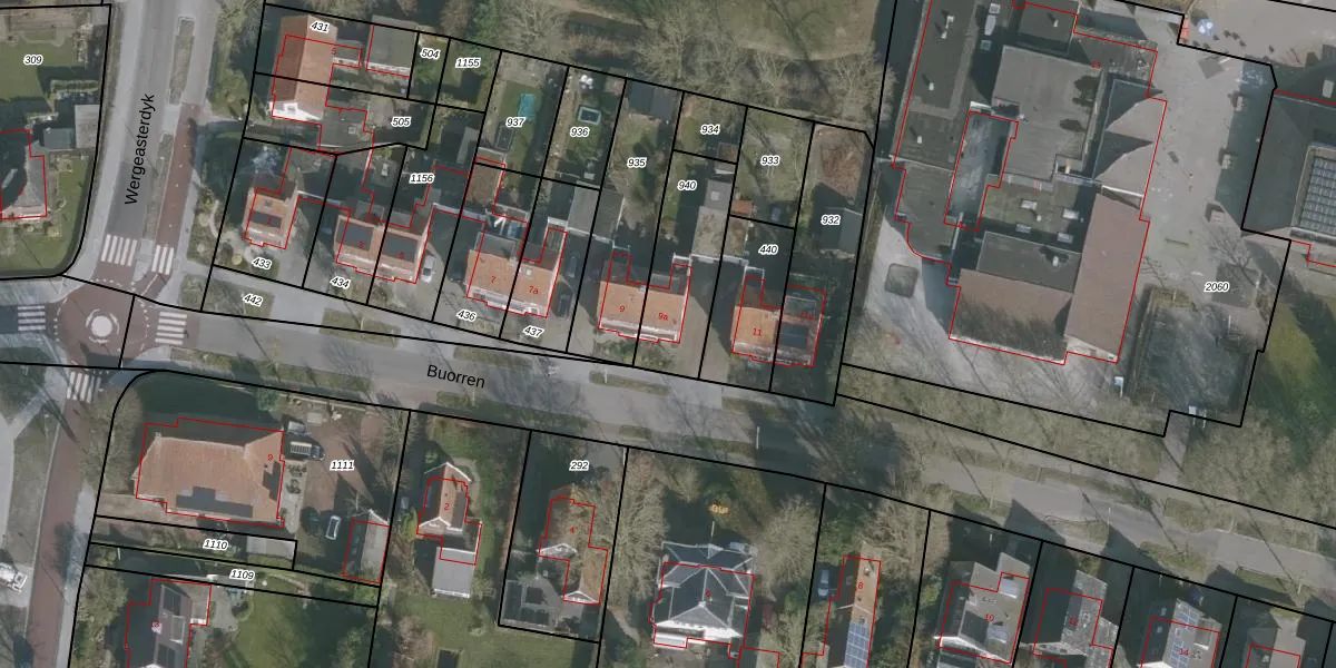 Het perceel waarop Buorren 9-a staat heeft een oppervlakte van 334 m². Dit is een groot perceel. De perceeloppervlakte wordt geregistreerd door het Kadaster. Gedetailleerde informatie over de maten van dit perceel kunt u vinden in het rapport Kadastrale kaart met maatvoering van Buorren 9-a.