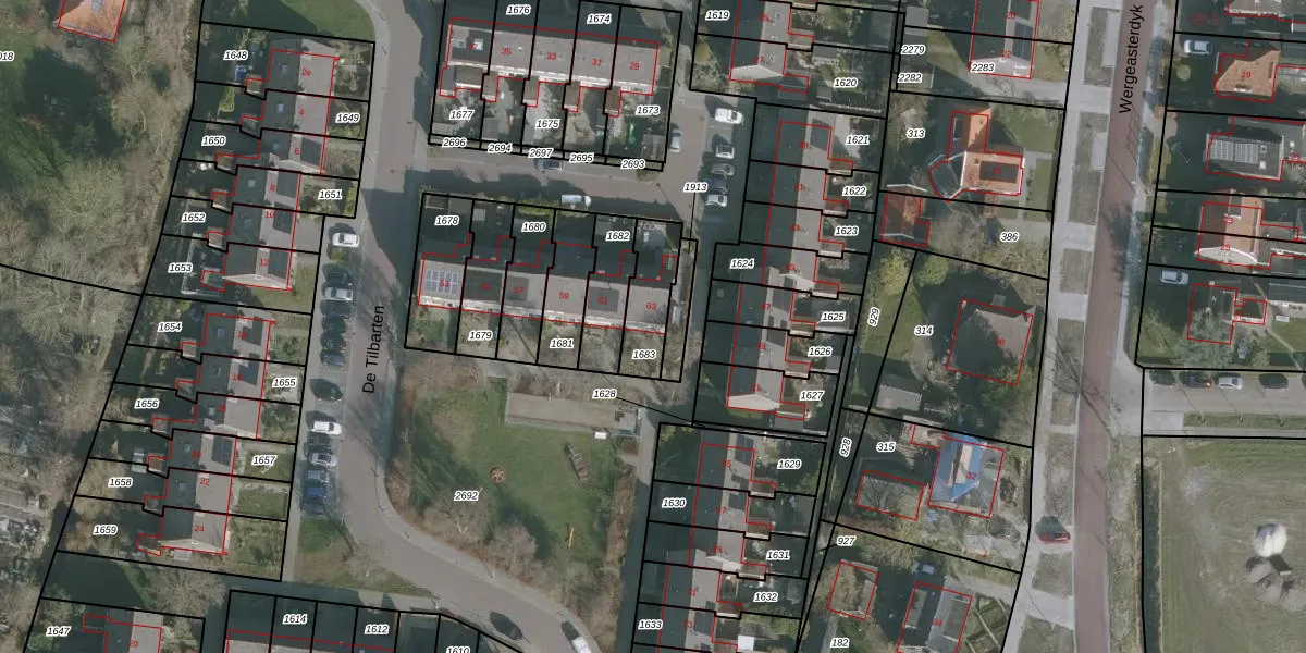 De Tilbarten 63 is gelegen op kadastraal perceel HZM00F1683. Deze kadastrale aanduiding is uniek en wordt gebruikt door het Kadaster om eigendomsrechten en andere zakelijke rechten vast te leggen. Het perceel maakt onderdeel uit van de kadastrale gemeente Huizum.